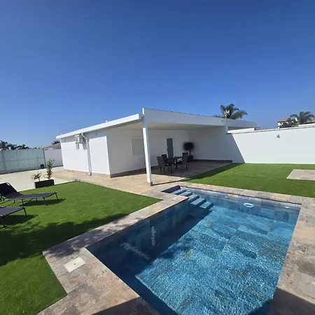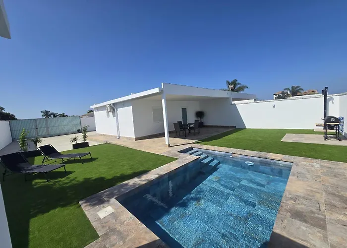 Villa Laruma Conil De La Frontera offers proximity to nearby tourist spots, such as the sheltered cove Playa y Calas de Roche Beach, situated 3.5 km away. This holiday home awaits guests on a terrace with a swimming pool.